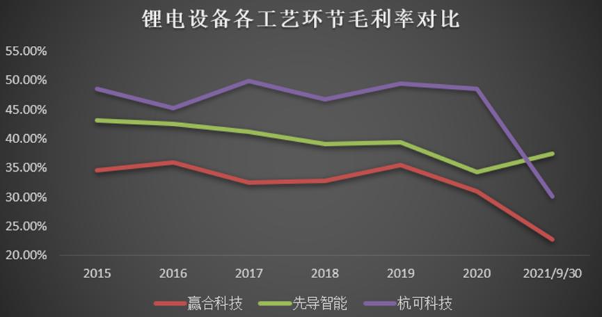 目前来看,锂电池三大设备商赢合科技、先导智能、杭可科技各有优势,分别是锂电池设备前段、中段、后段的龙头,三分天下,竞争格局看似较为稳定。