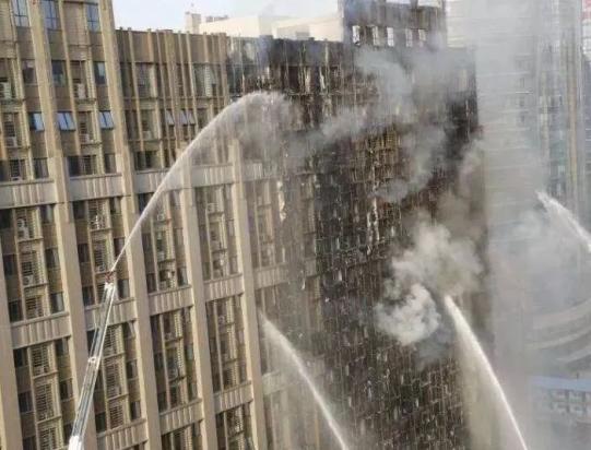 2018年2月1日,河南郑州市郑东新区绿地原盛国际办公楼外保温材料起火。
