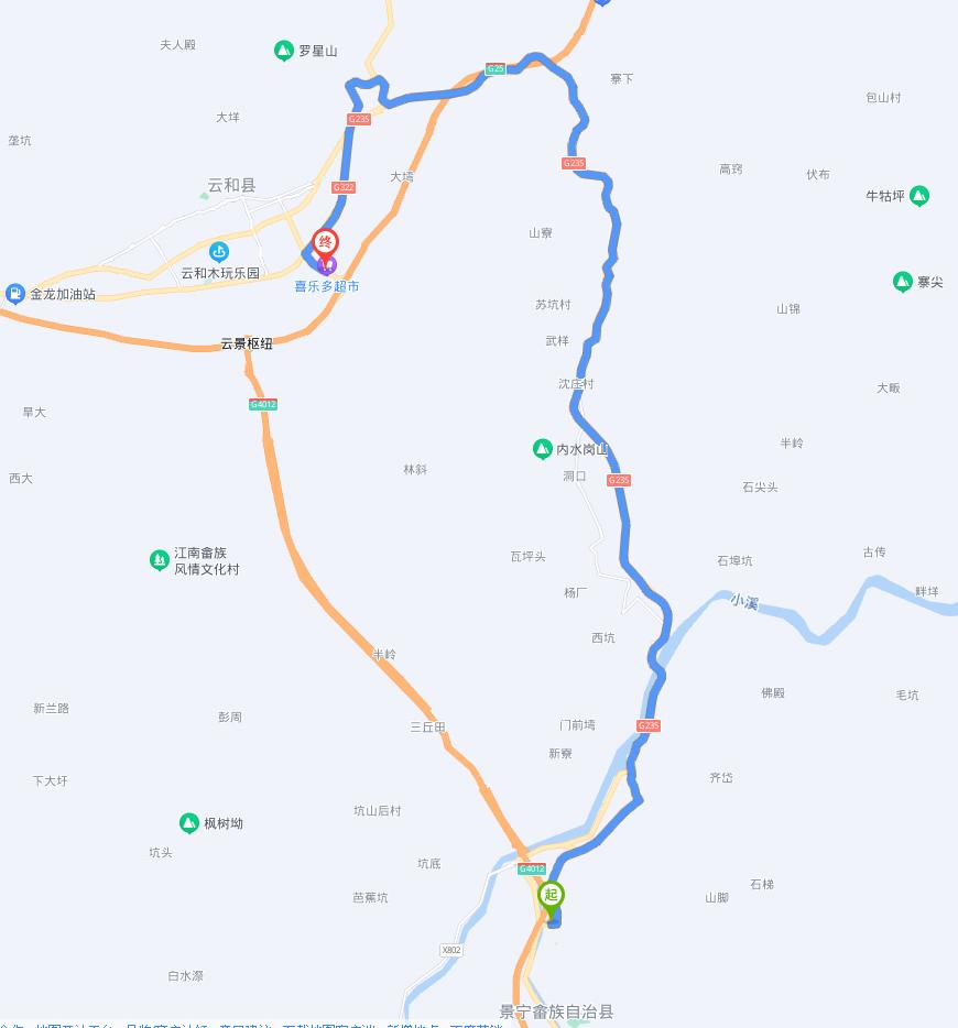 注:景宁互通→人民北路(2km)→G235国道(直行25km)→仙宫大道(0.5km)→云和互通