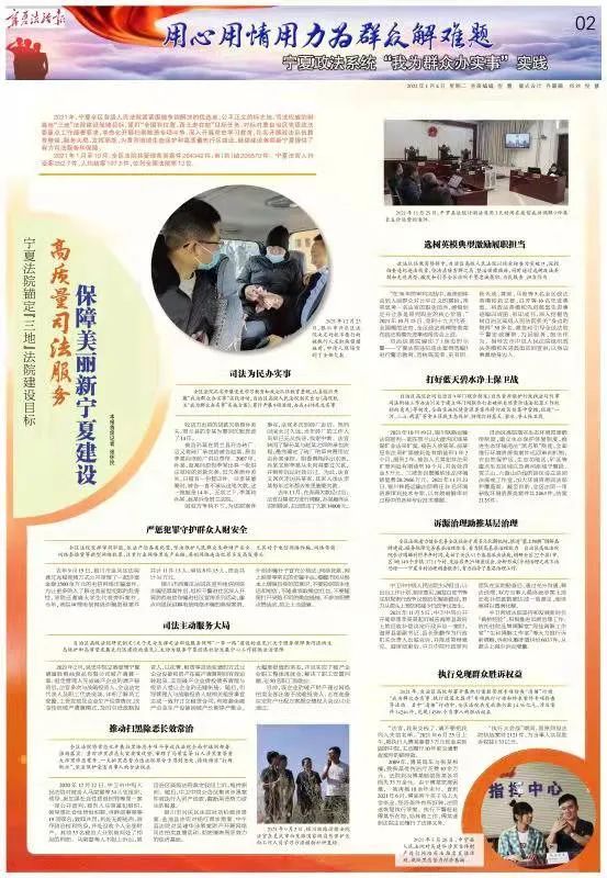 原标题:《高质量司法服务保障美丽新宁夏建设 |宁夏法院锚定"三地"法院建设目标》