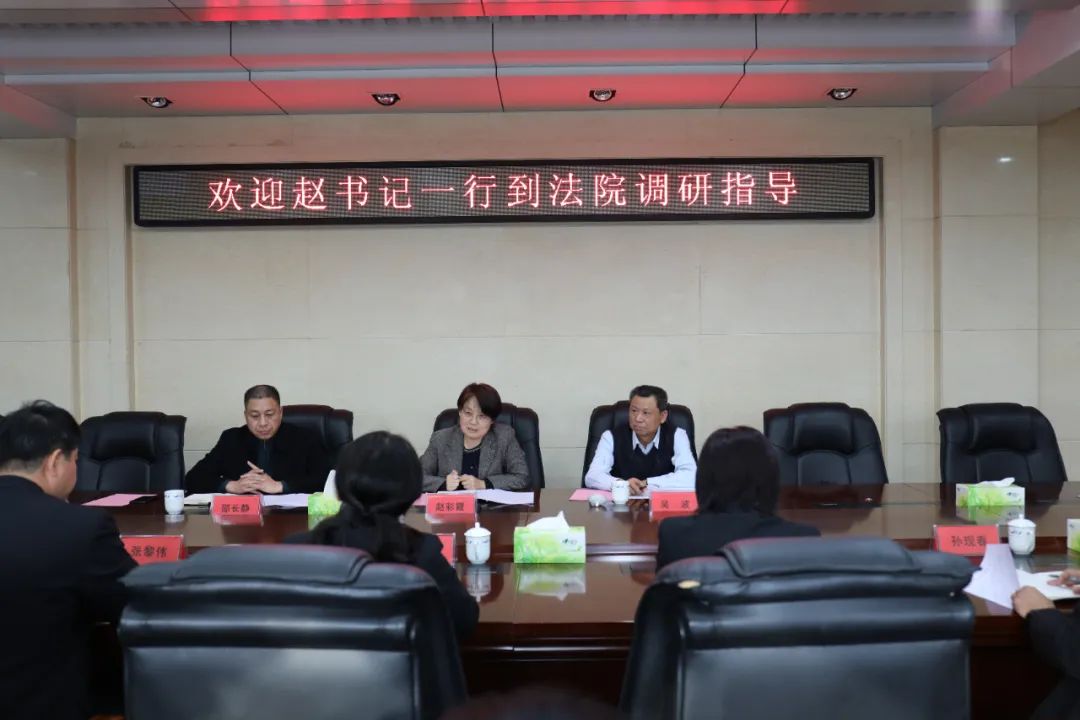 2022年1月4日,周村区委政法委书记赵彩霞一行到周村法院调研指导,区法院党组书记、代院长丁文及其他班子成员陪同调研。