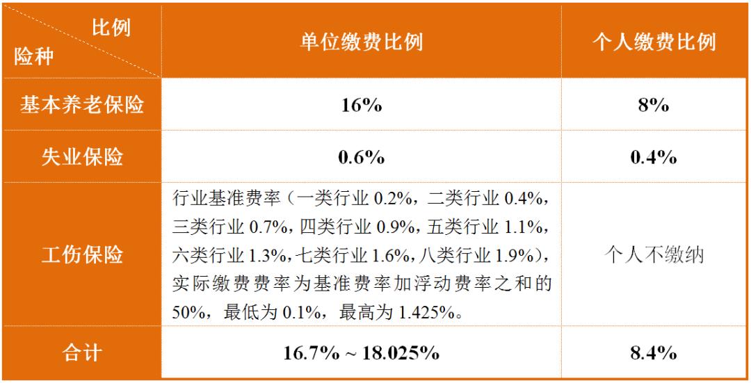 缴纳基本养老、失业、工伤保险费标准