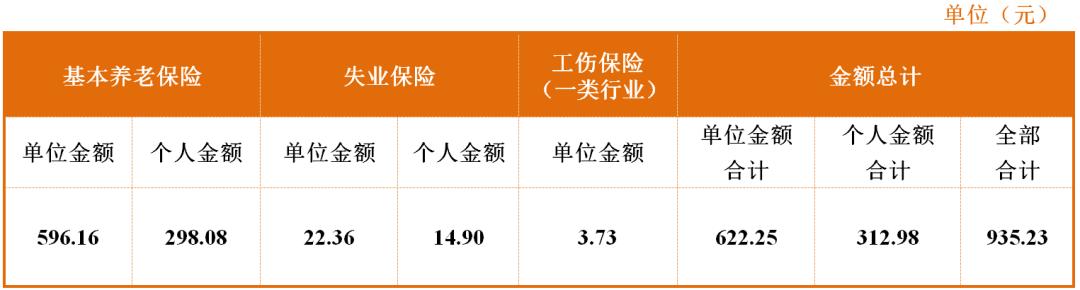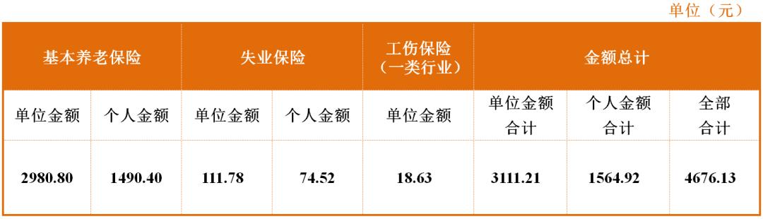 一、各项社会保险费的月缴费金额