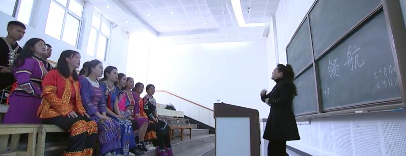 在红河学院音乐舞蹈学院的教室里,讲师张艺正在教授学生们演唱《领航》,并叮嘱大家要注意演唱时的情感,要反复练习,力求唱到最好。“我们伟大的党,带领亿万中华儿女乘风破浪、扬帆起航,阔步走在新时代的征程上。这首充满力量的歌曲,让我们时刻铭记‘永远跟党走’,激励我们在今后学习工作中勇往直前。”张艺激动地说。