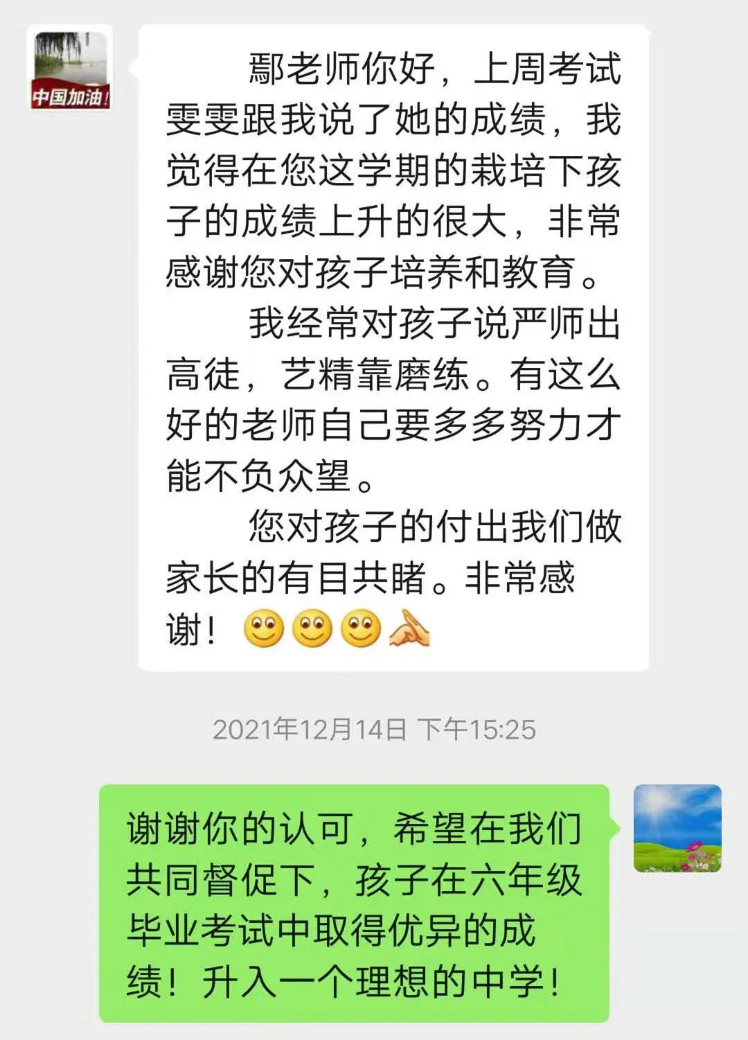 同时,她在班里以身作则,帮助孩子们形成好的习惯。比如,平时看到地上有纸屑、垃圾时,她总是弯下腰去捡起来,因为学生看到老师这样做之后,也在地上搜索是否有纸屑了。在校园里她主动和同事们、学生们问好,学生们也学着她的样子和老师、同学打招呼。