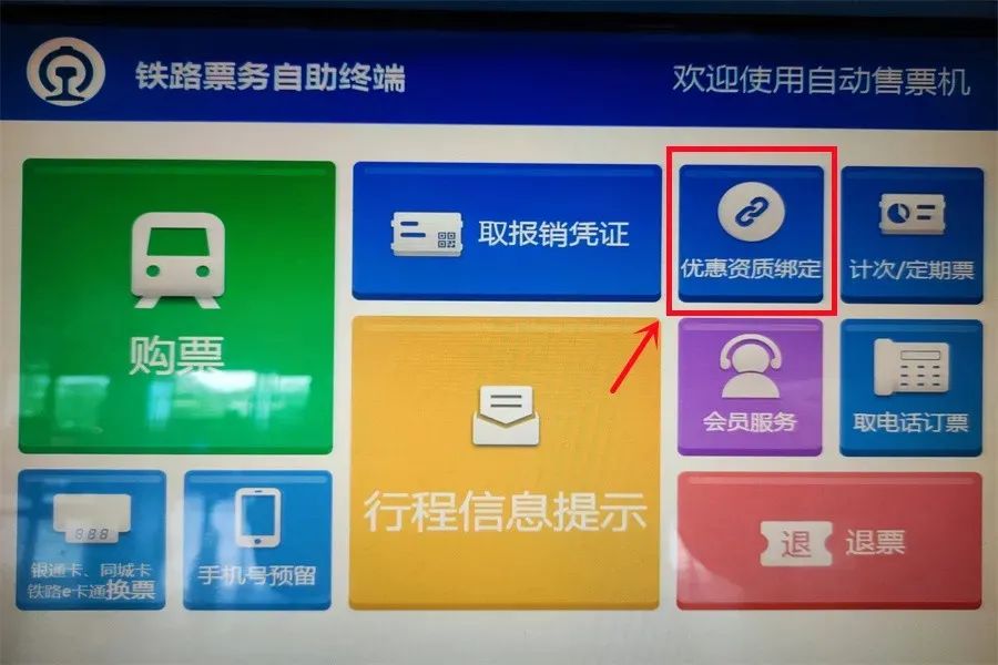 大中专院校学生可以凭借符合条件的“学生购票优惠卡”,在以上网点的自助取票机办理“学生购优惠票资质绑定”。只要点击“优惠资质绑定”选项,将符合规定的“学生购票优惠卡”放置在读卡区,学生证读取成功后,再将身份证件放置到读卡区,资质优惠绑定即可成功。