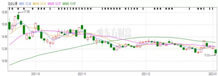 就目前延安必康的二级市场来说,在经历了因六氟磷酸锂价格的影响后,其股价就再未出现较大涨幅。2021年9月其股价最高曾至17.99元/股后,就开始渐趋平稳,今日盘中,其股价最低曾触及11.01元/股。