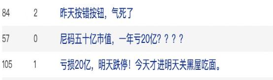 这突如其来的公告,7万股民坐不住了。有人表示:“市值才50亿元,竟然一年亏20亿,明天大面。”“亏损20亿,明天跌停。”“今天刚买的,服了。”