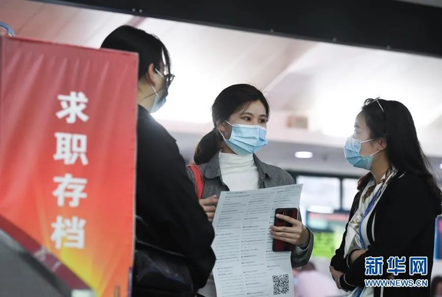 求职人员在招聘会现场与企业招聘人员交流。新华社记者 毛思倩 摄