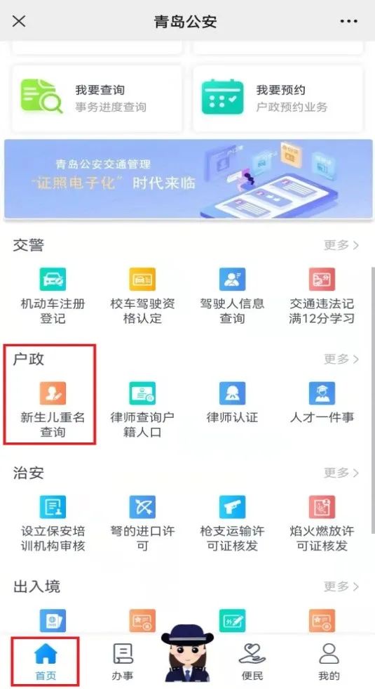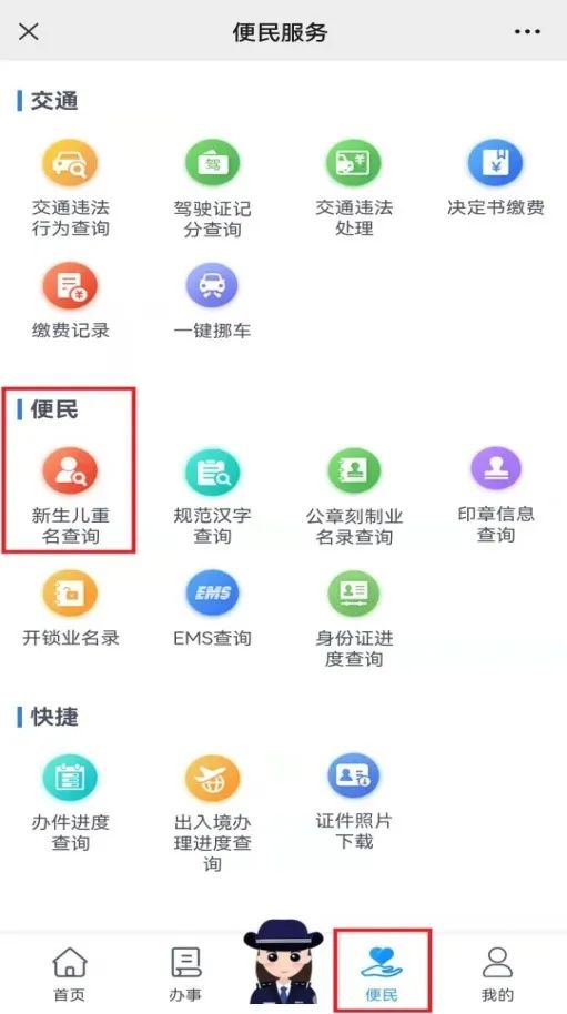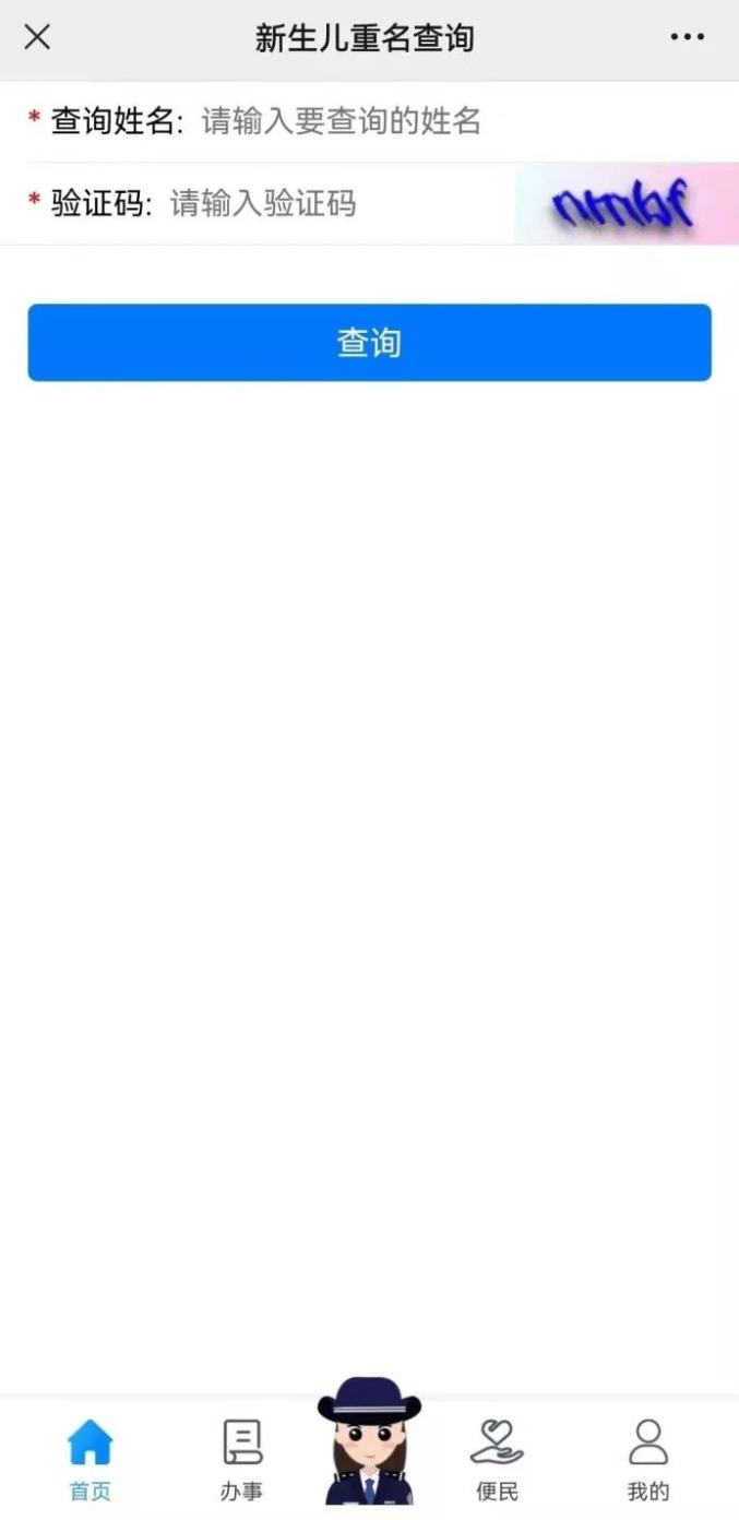 3.进入后有两条查询路径可进入新生儿重名查询界面
