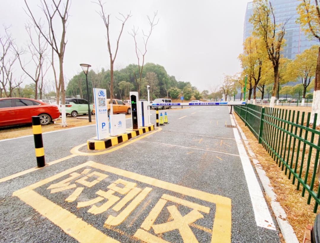 星沙生态公园停车场使用智能化道闸。图为二期停车场入口道闸往内推进十余米,留出排队空间。
