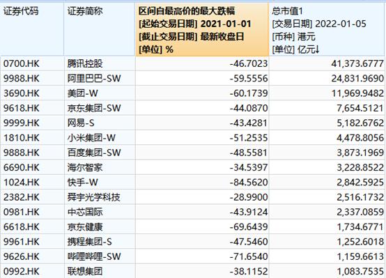 证券时报注意到,以互联网股票为主的恒生科技指数自2021年年初以来,已经“腰斩”,部分成分股跌幅更大。其中,快手、哔哩哔哩、美团、阿里巴巴、小米集团等跌幅超过50%,百度、腾讯控股、网易等接近“腰斩”。