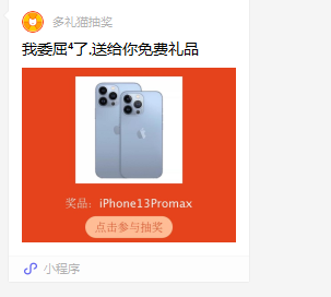 广东河源市东源县一位17岁的小姑娘刘某在网上认识一位未曾见面的“网友”,彼此聊天有两个月,1月2日这天,这位“网友”向其发送一个微信小程序“多礼猫抽奖”的小程序,说是可以抽奖苹果13手机,自己没有抽到,让其可以抽奖看看。