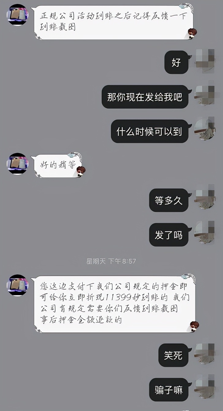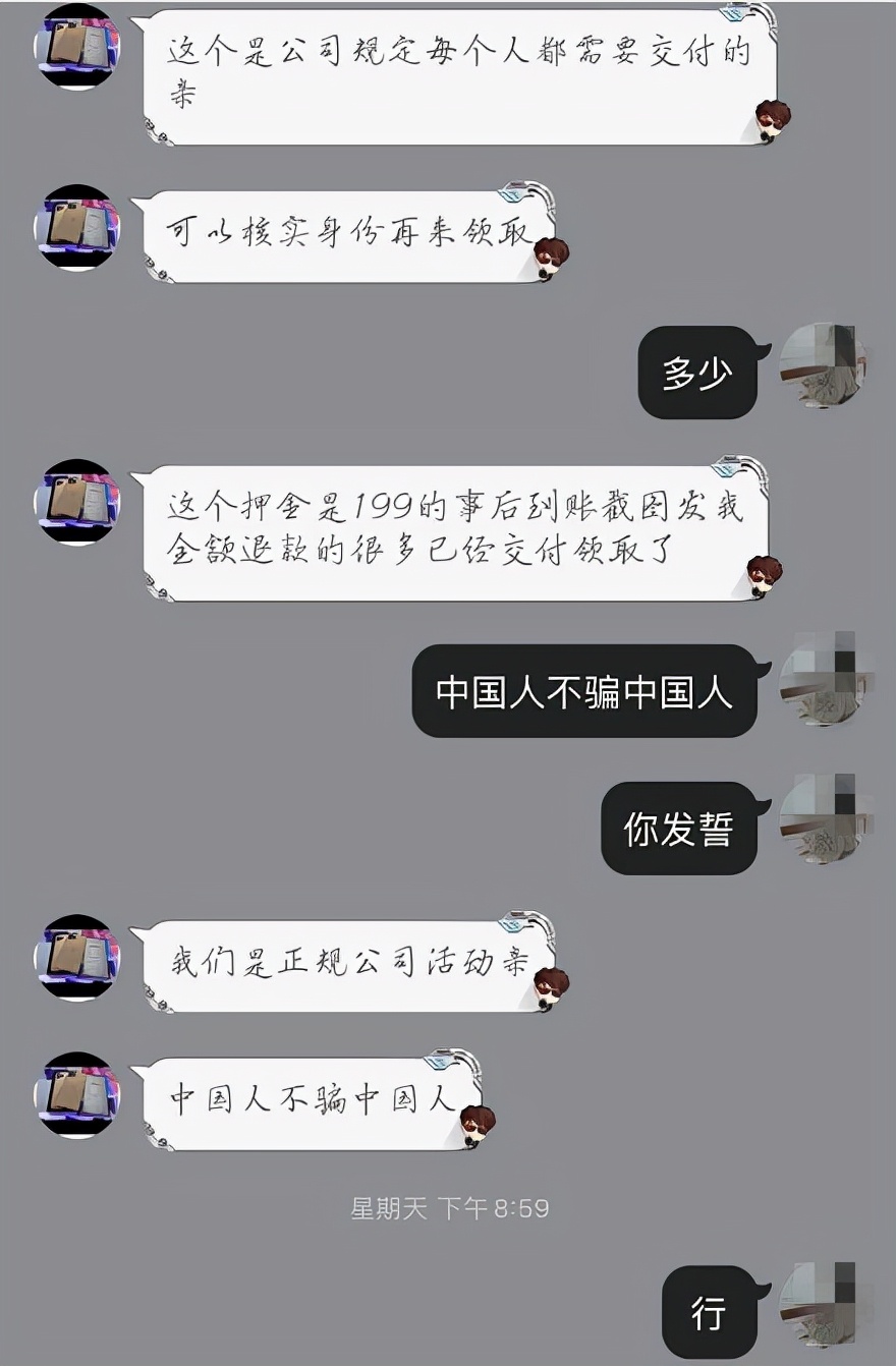 骗子:这个押金是199的事后到帐截图发我全额退款的很多已经交付领取了