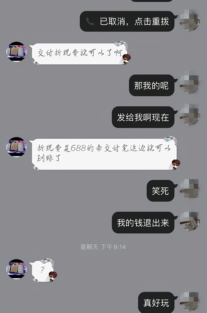 骗子又说,你这边支付一下折现费这边给你到帐的亲事后押金折现费都会全额退款的 立刻到账11399的