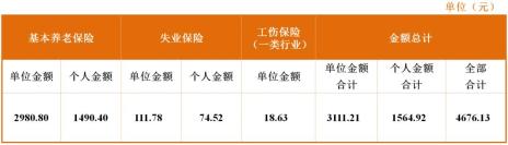 一、各项社会保险费的月缴费金额