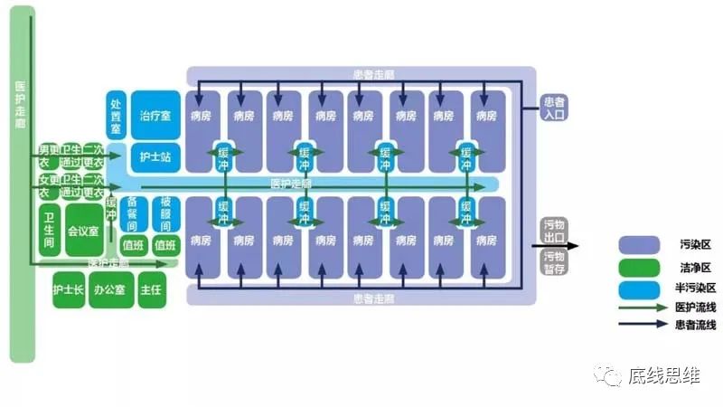 收治新冠肺炎这样的烈性传染病,对医院设施有着严格的要求。以住院病区为例,必须符合“三区两通道”格局。三区即清洁区、污染区和半污染区,两通道是指医务人员通道和病人通道。