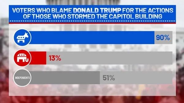 一年前就只有少数共和党选民将事件归咎于特朗普,在民主党费力宣传一年后,并没有多少改变,因为美国已形成了信息“双循环”。图为去年1月News10的民调