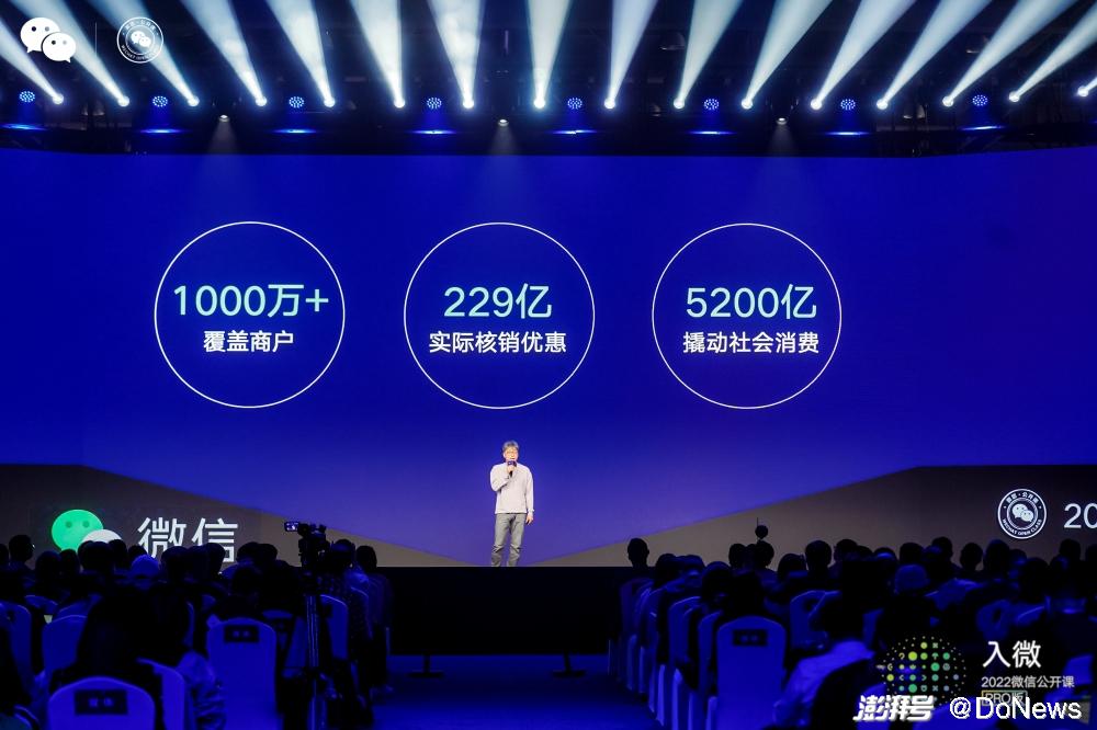 第二个故事是关于纸质优惠券电子化。过去几年微信支付一直致力于把商家的数字化经营,但这件事情非常困难,要变成数字化收单,同时还要解决发券、核销、对账等一系列数字化升级的问题。通过与生态合作伙伴的合作,超过1000万家商户都是大中型商户与微信支付卡券系统打通,完成了229亿的实际核销优惠,撬动了5200亿的社会消费。