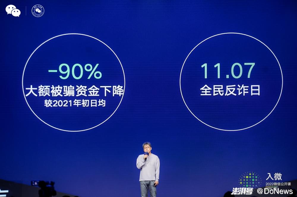 从2019年下半年开始,微信支付联合腾讯的其他团队, 从可疑交易去做提醒,希望“天下无欺”。2021年年底相比年初,大额被骗的资金降了90%,“这可能是2021年最自豪的事情”。