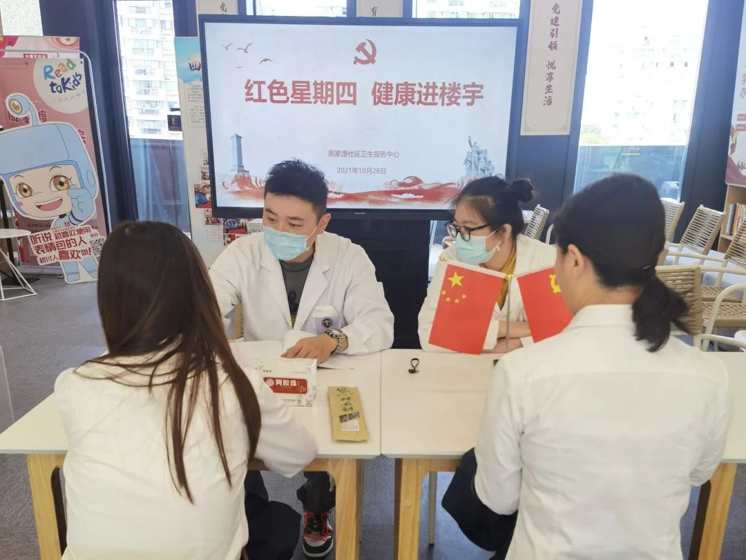 主动接洽,健康驿站进楼宇。作为社区健康的守护者,服务对象不仅是身患各类疾病的老年人,更应包括青年一代白领一族。党史学习教育开展以来,中心党支部主动接洽街道党建中心,深入了解辖区楼宇白领分布和健康需求,在“中建广场党群服务站”设立“红色星期四,健康进楼宇”家庭医生服务驿站。该驿站由全科医护团队入驻进行组团式健康服务,利用午间1小时开展测量血压血糖、健康咨询、体检报告解读、工间操指导等多种服务,全方位呵护白领健康,让白领们足不出楼宇就能享有基本医疗保健服务。现在提到“红色星期四”,位于中建广场的白领们都会竖起拇指连连称好。