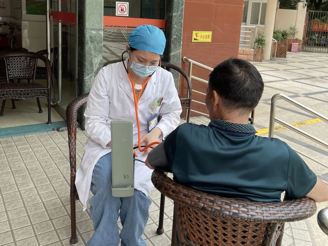 定时定点,家医助老深融合。中心党员全科医生每周定时定点来到养护院和为老服务中心,为在此享受日间照护的50余位老年人提供健康咨询、用药指导、慢病管理等服务;也为每位老年人建立健康档案,提供定期的评估分析,通过主动干预提高老年人的健康行为,并开放24小时热线电话;同时,为老年人到中心就诊及配药开通绿色通道。