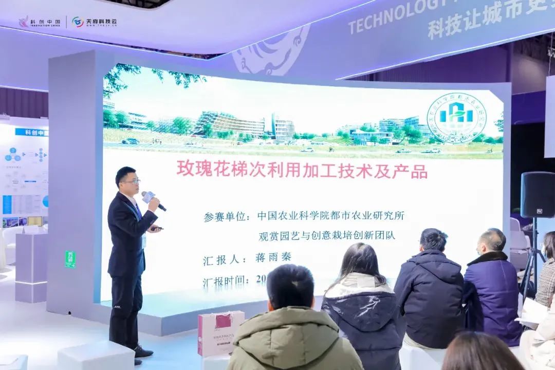 在科创会上,位于四川天府新区的中国农业科学院都市农业研究所观赏园艺与创意栽培团队申报的“观赏中药材、观赏花卉等产业化关键技术”和“玫瑰花梯次利用加工技术及产品”2项技术成果成功入选并在大会现场进行了推介。