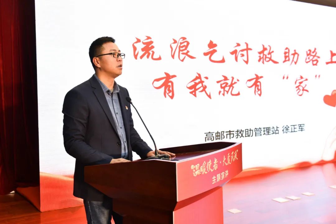 徐正军回顾了自己从一名懵懂的大学生成长为救助业务骨干的心路历程,分享了自己用热心、诚心、恒心为生活无着流浪乞讨人员提供温馨的“避风港湾”,不抛弃、不放弃为他们奔走寻亲的故事,展现了“流浪乞讨救助路上有我就有‘家’”的坚守担当。