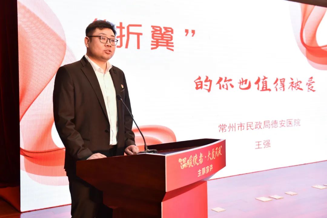 王强讲述了他在精神病患护理工作岗位上,面对特殊服务对象和艰巨的护理任务,以热爱支撑职业理想,用真情抚慰心灵,甘当“男保姆”,精心呵护患者好转、痊愈的工作点滴和感悟体会,以“阳光天使”的形象,诠释了民政为民爱民的初心。