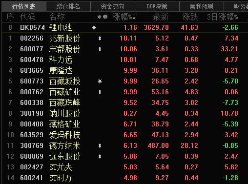虽然行业涨价仍在持续,但近期锂电池概念股的股价表现却相当“颠簸”。今日概念股强势反弹,西藏矿业、西藏珠峰、西藏城投等股纷纷大涨。