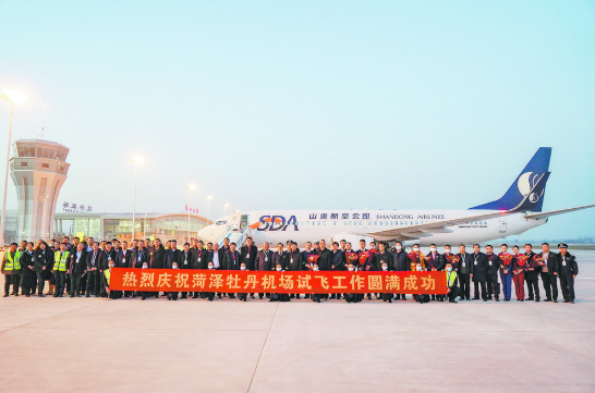 2021年4月2日11时45分,菏泽牡丹机场飞往西安咸阳国际机场的山东航空SC2319航班顺利起飞,标志着菏泽牡丹机场正式通航。该机场作为全国重点推进建设的11个新建机场之一,开通9条航线,连接北京、上海、广州等14个国内主要城市,千万菏泽人民实现了在家门口坐飞机的“航空梦”。