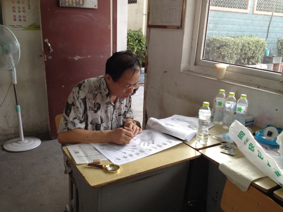 张海国在肤纹采集现场