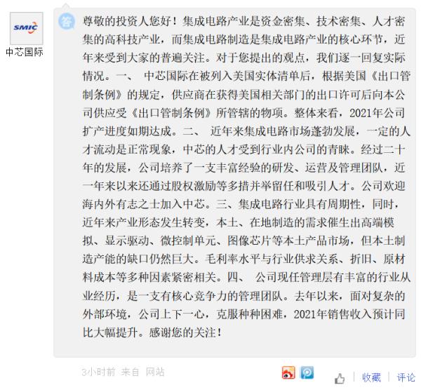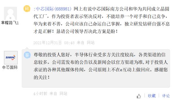 1月6日,中芯国际也在“上证e互动”平台就外界质疑一一作出回应:
