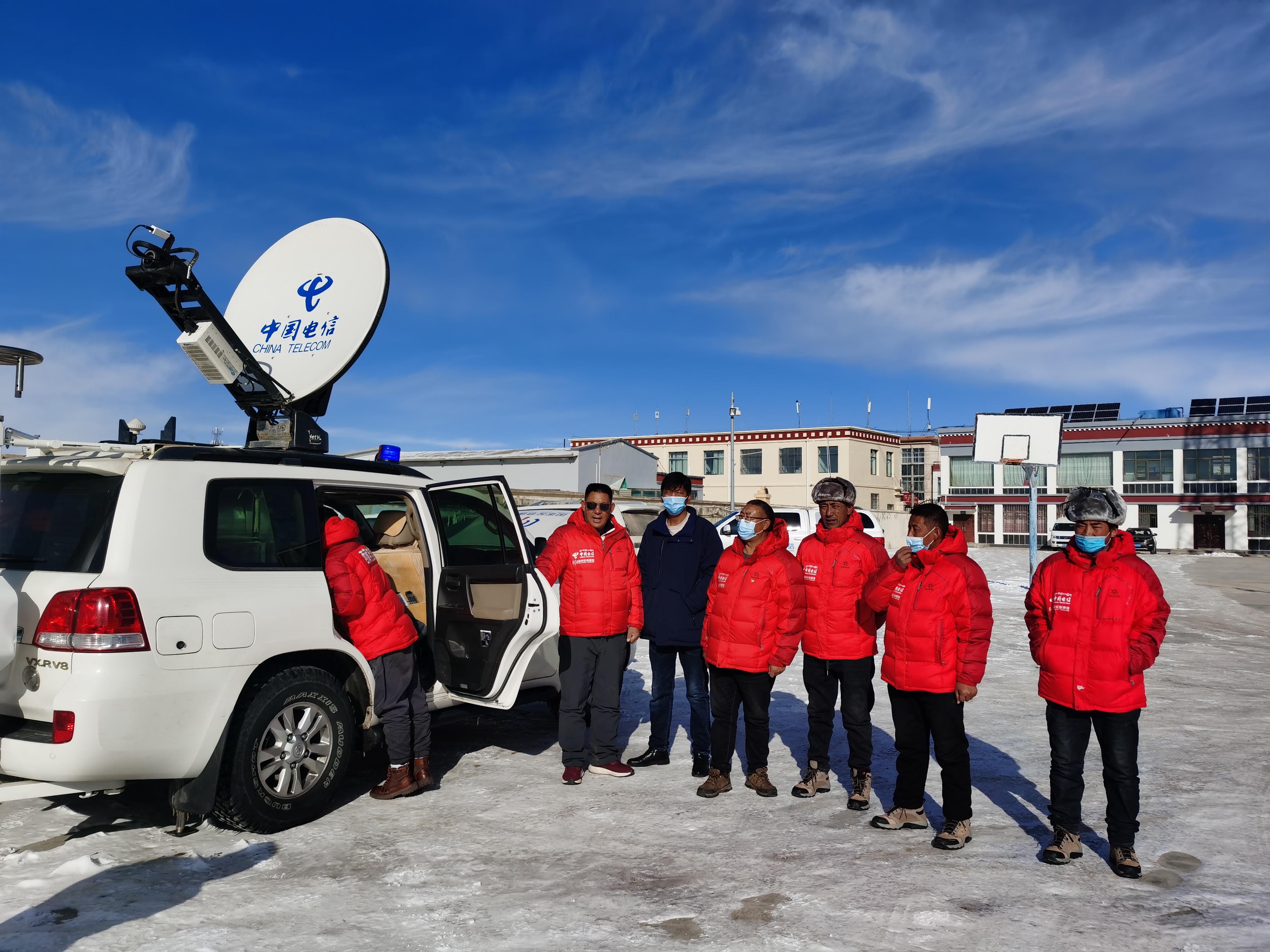 先遣乡德布康饶基站,海拔5042米,零下38度,阿里改则电信局一线抢通人员在边旺局长的亲自带领下,克服天气恶劣、道路中断等困难,肩扛油机、光缆等设备徒步开展通信抢通保通工作,为当地抗雪灾工作调度、道路抢通、民生工作提供通信保障。自然的力量远非任何个体所能抗衡,在这场抗击冰雪灾害的战斗中,只有依赖团队的力量才能够获胜。中国电信阿里分公司改则电信局,就为我们上演了一幕齐心协力,众志成城的抗灾故事