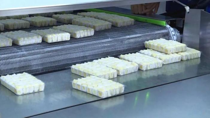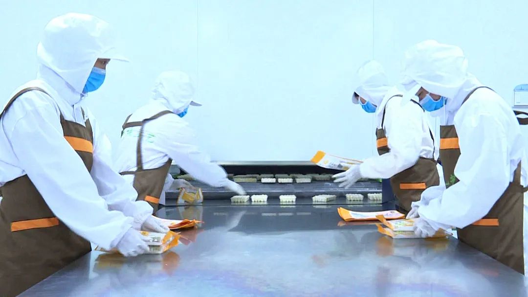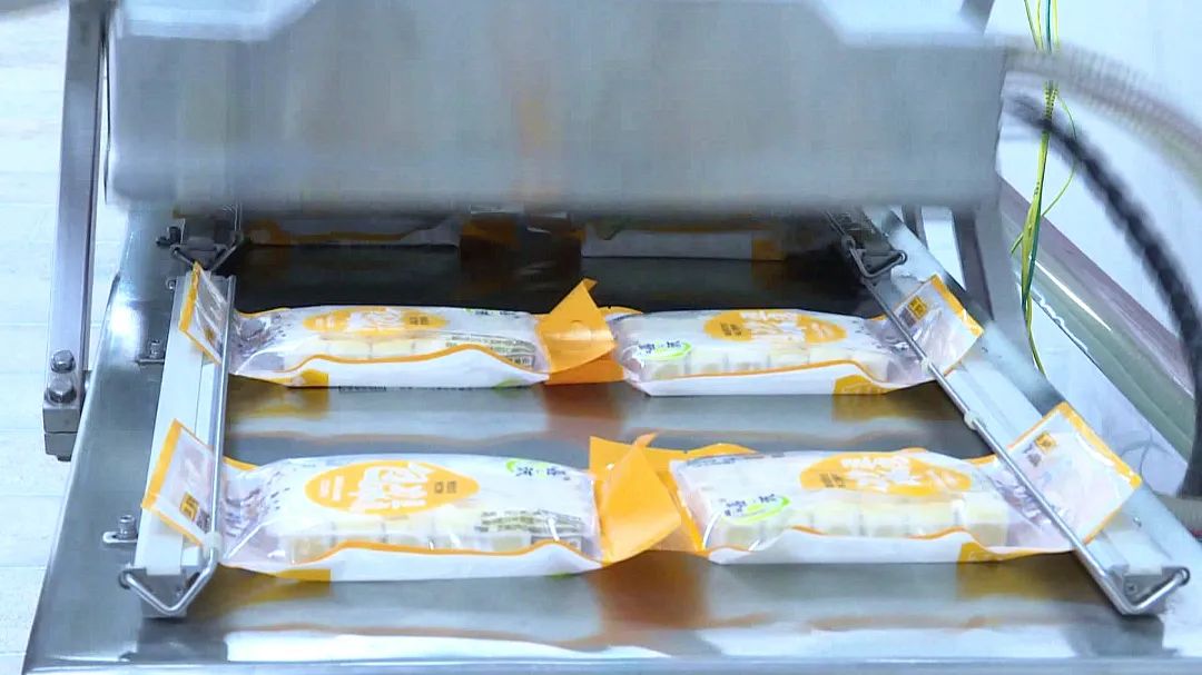 工作人员在包装豆腐