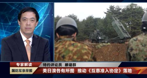 《澳大利亚人报》称,该协定也将为日本、美国和澳大利亚在日本举行联合军演铺平道路。对此,本台特约评论员滕建群认为:这份协议是一个典型的具有军事同盟性质的文件。之所以能够在现在落地,在于美日澳三方的各怀鬼胎和心怀叵测。