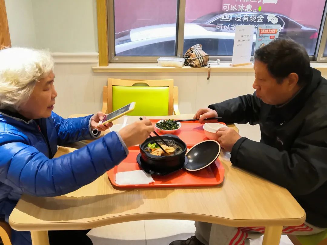 “咱们食堂真的好,方妈妈变着花样给我们烧菜,每隔一段时间就更新菜单,每天不重样,老年卡还有优惠打折,我吃了几年都吃不腻!”正在就餐的叔叔积极地向调研菜品口味的社工反馈。
