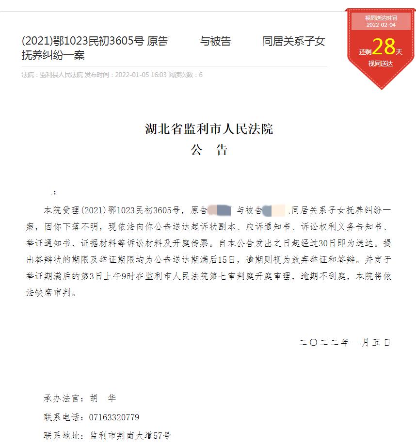 1月5日,监利法院裁定将本案转为普通程序审理,因该案基本事情清楚,权利义务关系明确,决定由审判员一人适用普通程序独任审理;同日,该院通过湖北法院司法送达网向被告进行了公告送达,自公告发出之日起经过30日即视同送达。