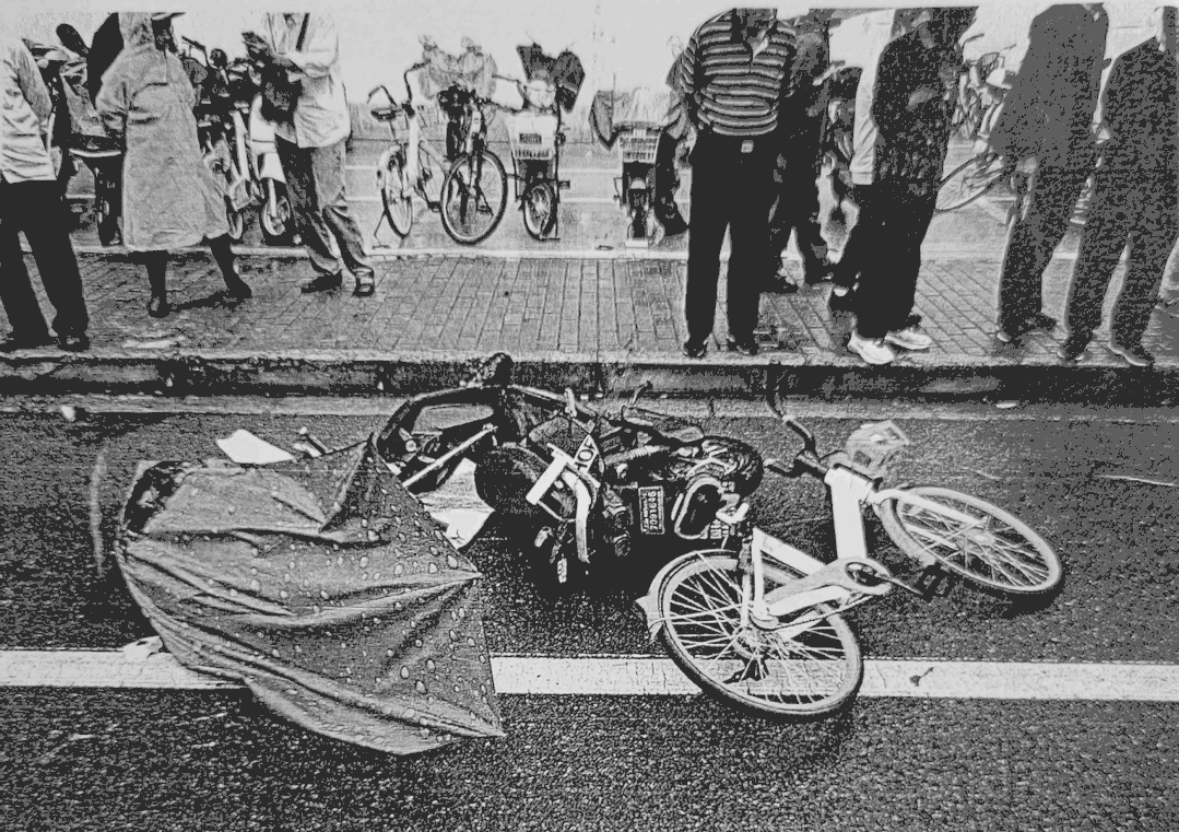 2021年6月2日下午1时许,普陀区双山路上发生一起交通事故。一辆违规安装遮阳棚的电瓶车与一辆推行的自行车相撞,推车女子被撞倒,送医后经抢救无效身亡。