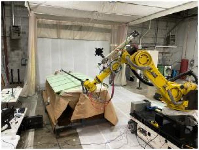 2021年3月,美国Aerobotix公司开发出适用于下一代高超声速导弹的机器人装配线,主要完成复杂导弹部件的扫描、打磨、喷涂、测量等工作。该装配线中,首先采用高保真结构扫描仪记录每个部件的制造尺寸数据,并根据该数据自动生成部件的打磨路径,由打磨机器人执行打磨作业以实现最佳的涂层附着力;然后由一个防爆喷涂机器人喷涂数十层明特克公司的FIREX RX-2390抗烧蚀涂层(精度可达千分之一英寸),机器人使用非接触式测量工具记录湿涂层厚度,以确保涂层在公差范围内,满足对高超声速导弹至关重要的热防护和空气动力学一致性要求,保护其结构免受高超声速飞行的极端温度影响。