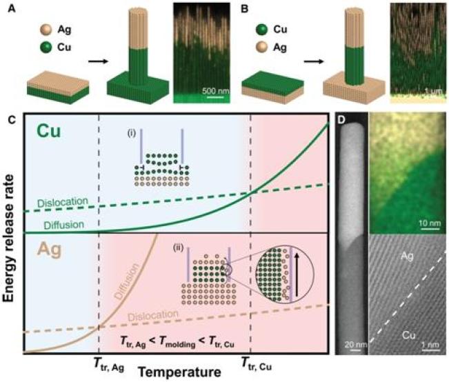 2021年11月,在美国国家科学基金会先进制造技术计划支持下,美国耶鲁大学和康涅狄格大学合作通过深入研究热机械纳米成型技术的内在机制,并利用对热机械纳米成型机制的调控实现了异质微纳结构的可控制造。热机械纳米成型通过向材料施加压力和温度将其驱动到具有纳米图案的模具中从而成型纳米结构,研究人员通过预测扩散和位错滑移实现对这一过程的调控,制造出直径低至5纳米的超细纳米线,还演示验证了通过采用热机械纳米成型工艺调节纳米线上元素分布,从而实现多功能纳米结构的可能性。该项研究成果可用于光电探测器、场效应晶体管、发光二极管等纳米器件。