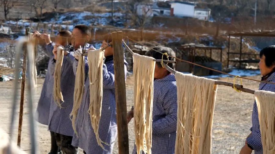 时下正是数九寒天,在磁县靖增农业种植专业合作社,二十多名妇女分工协作,在粉条作坊里忙着加工粉条,经过和粉、漏粉、洗粉、吊挂等环节,一排排整齐的粉条被挂在院落,静静等待晾晒成功后成为人们餐桌上的美味。