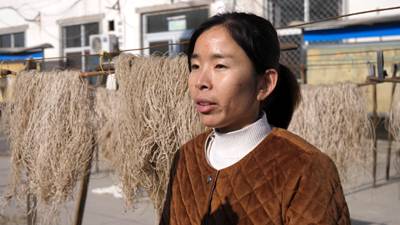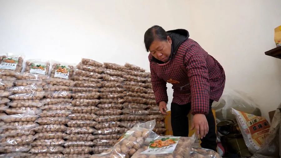 磁县北贾璧乡周庄村 田海叶:包装点小米、粉条、花椒,还有花椒面,每天就这些活,一天挣50多元钱,那不比在家坐着强?