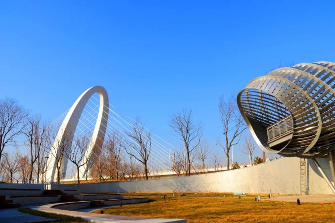 “斜阳剧场”通过几级大台阶解决场地中心和周边的高差问题,并设置木坐凳,形成整个空间的人气“聚场”,将承载市民们喜爱的各种类型活动。同时,为了更好地服务保障2022年冬残奥会,桥下设置无障碍通道,实现公园道路与桥下空间无障碍联通。桥下空间南侧建成露天剧场和观景平台,形成1100平方米下沉空间,为周边居民提供文化活动场地。