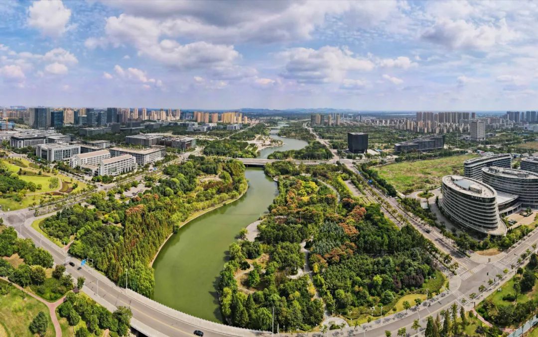结合国家级科技园的建设,将科技广场建设成集生态、景观、现代科技、旅游和娱乐为一体的开放式城市生态绿化广场。中央景观大草坪以混播的方式保证草地四季常绿,成为市民进行户外运动和集会的场所。广场建有智慧湖,为园区内部的主水系,面积约2.5万平方米,水质处理采用高科技的生物生态水处理技术,并通过大量的种植美人蕉、睡莲、荷花等水生植物,以及白鲢、花鲢、锦鲤等水生动物来净化水体,保证了水体生态平衡。