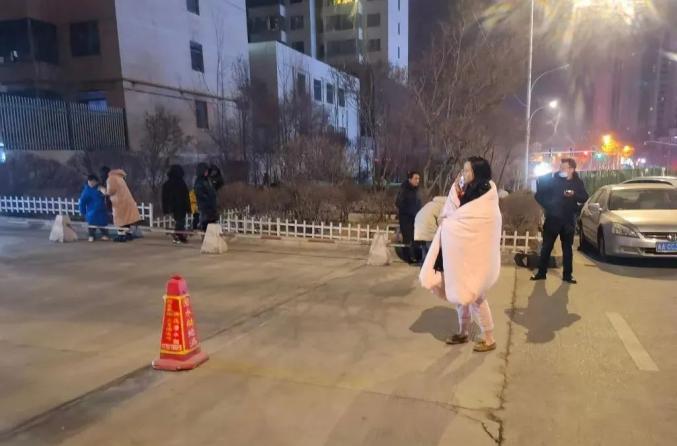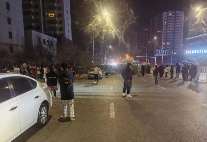 地震发生后,青海西宁震感强烈,有民众上街避险。