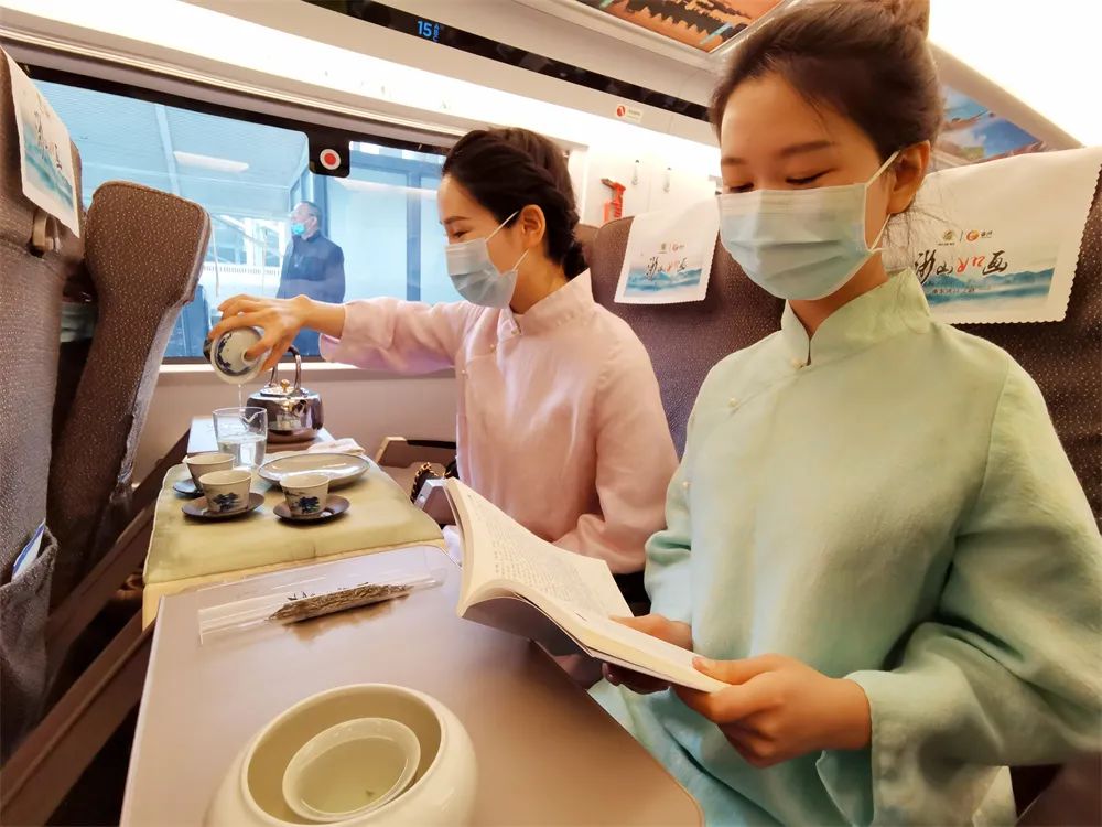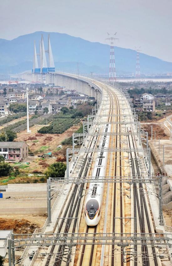 列车在欢歌笑语中驶上椒江特大桥,这座大桥是杭台高铁重点控制性工程,也是国内跨度最大的四线高速铁路双主桁钢桁梁斜拉桥。10时50分,列车稳稳停靠杭州东站,下车的旅客继续 “唐诗之路”,感受西子湖畔的美景。