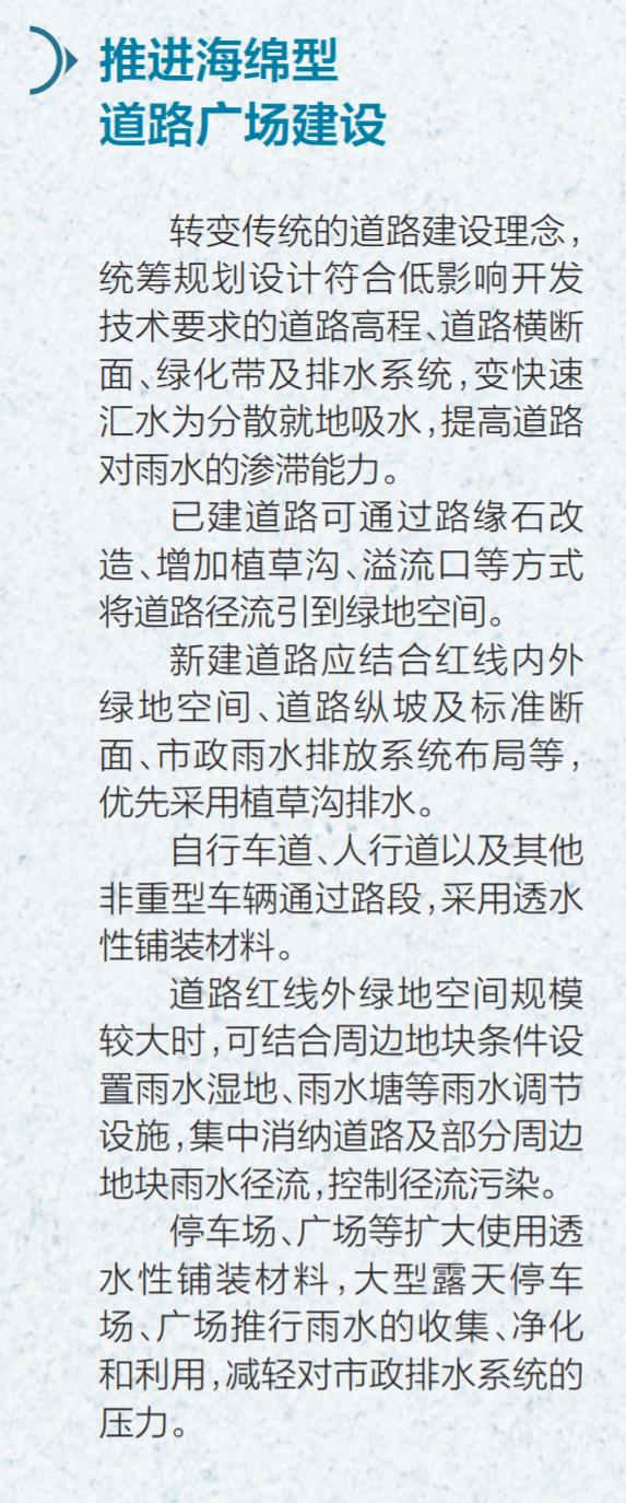 海南丰富的降雨量既带来丰沛的用水,也使降雨容易在短时内大量聚集,排泄不畅易形成城市内涝。为此,在此次“六水共治”中,我省提出要把海绵城市理念贯穿落实到城市内涝治理全过程。海口、三亚等7座城市均已完成海绵城市专项规划编制,明确海绵城市建设工作目标任务,要有序推进海绵型新老城区、建筑小区、道路广场、公园绿地等建设,总体实现自然积存、自然渗透、自然净化的城市发展方式。