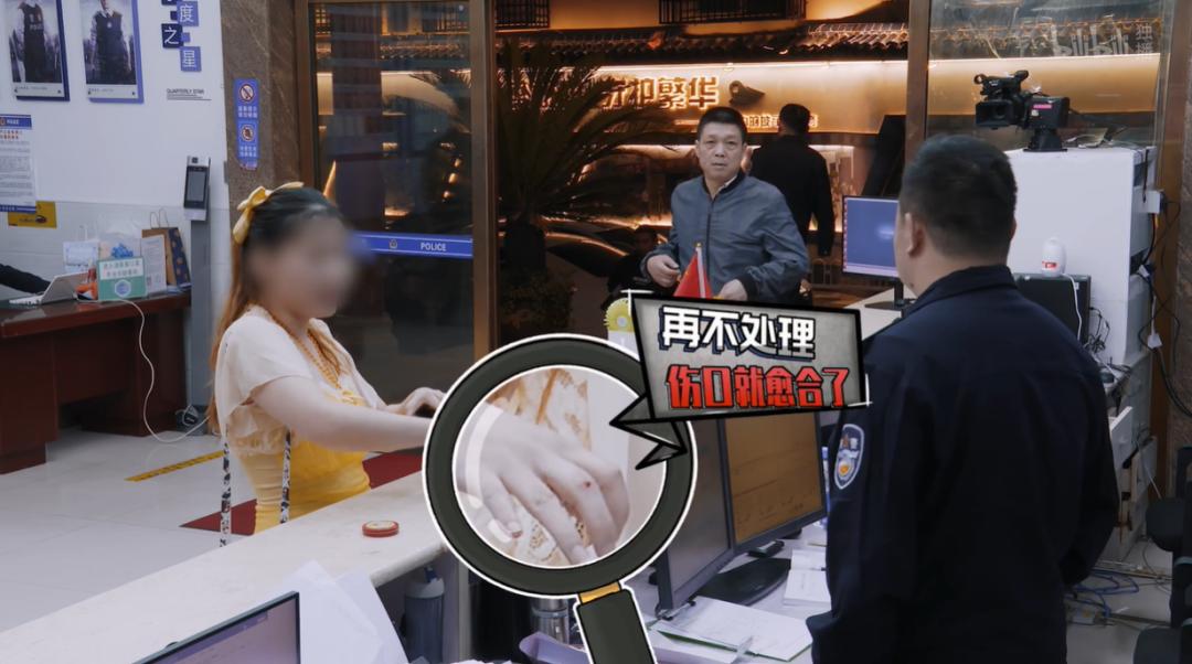 深夜11:50,36岁的女子彭某和21岁的男子刘某在坡子街派出所互相对峙,彭某声称刘某监控骚扰并用铁棍殴打自己,但却拿不出证据,她只是指着自己“再不处理就要愈合”的伤口,不断“控诉”。