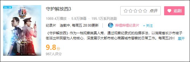 目前,《守护解放西》第三季在开播不到一天的时间内播放量就已破千万,弹幕数量也有近6万。热度极高的同时,口碑也十分不俗,B站评分目前已高达9.8,追平第一季。